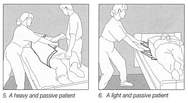 to turn a patient in bed. If there are two helpers available (fig. 5), you